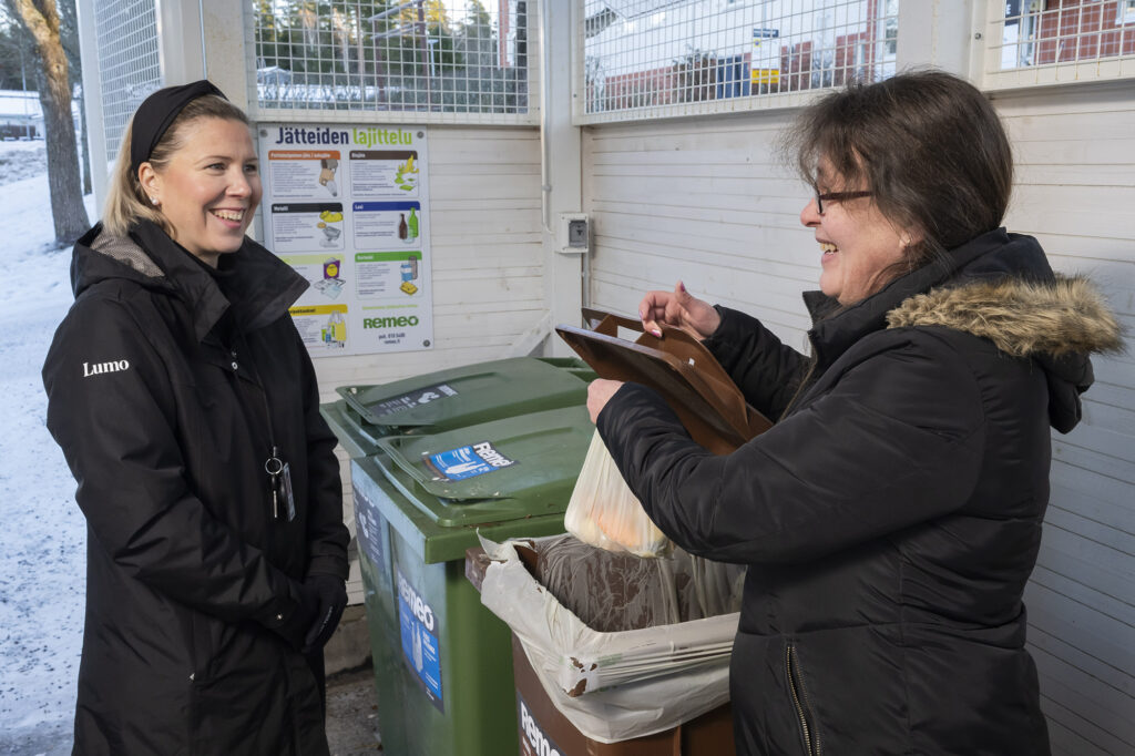 Kokemuksemme mukaan yksi asukastyytyväisyyteen vaikuttava tekijä on kattavat ja helppokäyttöiset lajittelumahdollisuudet. Uusimmista Lumo-taloista löytyy nykyaikaiset 3–4-jakeiset jätevaunut, ja monijakeisia lajitteluastioita lisätään vanhempiin taloihin peruskorjausten yhteydessä.