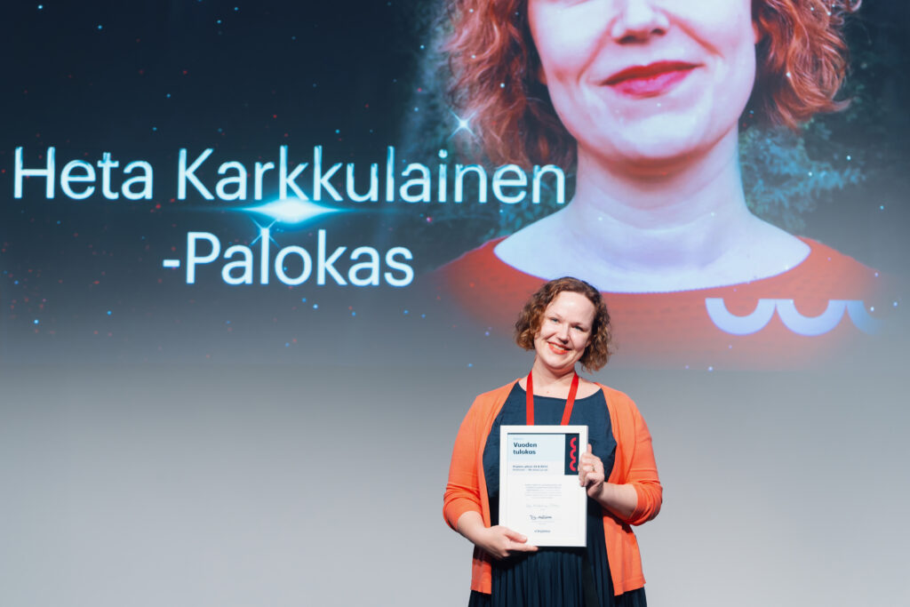 ”Olen aivan häkeltynyt, tämä on todella iso kunnia. Palkinnon saamishetkellä hämmennyin, enkä löytänyt sanoja, joilla kiittää tarpeeksi kunnianosoituksesta ja aivan huikeasta vuodesta. Olen saanut tehdä töitä ihanien työkavereiden kanssa, ja matka tähän hetkeen on ollut upea. Kiitos mahtaville matkakavereille!”, Karkkulainen-Palokas kiittää.
