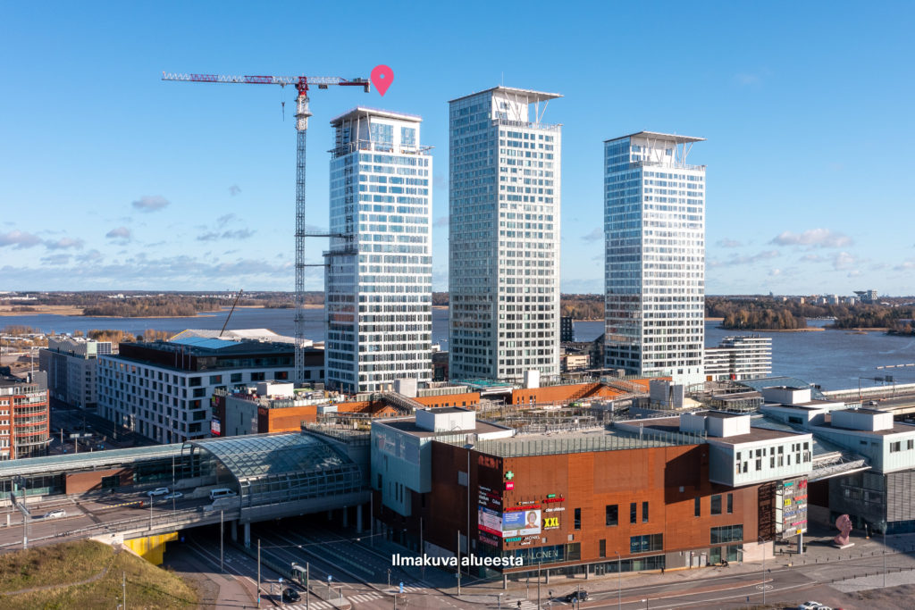 Lumo One provides an alternative to owning a home and easy access to a variety of services needed in daily life. The over 120 metre tall Lumo One building is located in a prime spot in Kalasatama’s skyscraper district, on top of the shopping centre REDI and right by the seaside, surrounded by beautiful views and excellent services. You can take the elevator right from your doorstep to the shopping centre which has a multitude of great services and excellent public transportation connections.