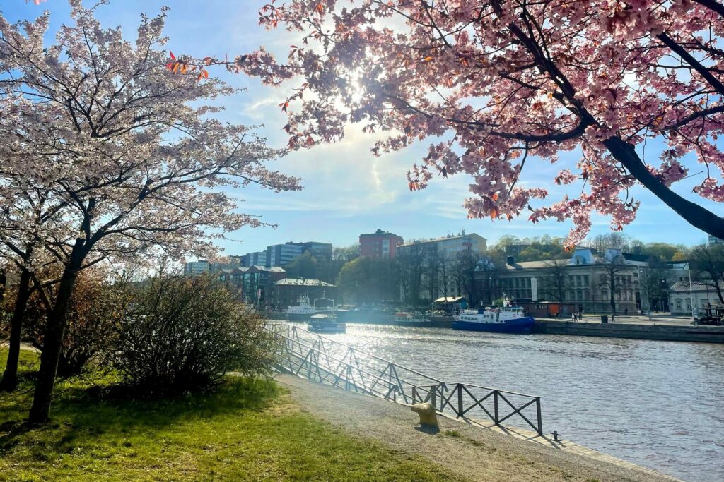 After the visit to the apartment building, it is time for a lunch break with colleagues on a terrace on the shore of Aura River. Casual news are exchanged at lunch and, of course, the praise for Turku is abundant. After lunch, we head back to the office where Inka Nyström edits the new photos, which are then added to the webstore.