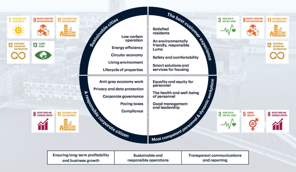 Our sustainability programme is based on our strategy and mission of creating better urban living. With our sustainability programme, we commit to complying with the UN Sustainable Development Goals and aim to use carbon-neutral energy in our properties by 2030.