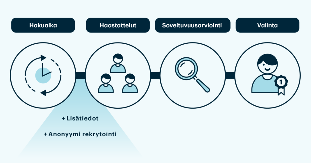 Haluamme edistää tasa-arvon ja yhdenvertaisuuden toteutumista myös rekrytoinnissa, joten toteutamme rekrytointiprosessimme ensimmäisen vaiheen lähes aina anonyymisti.