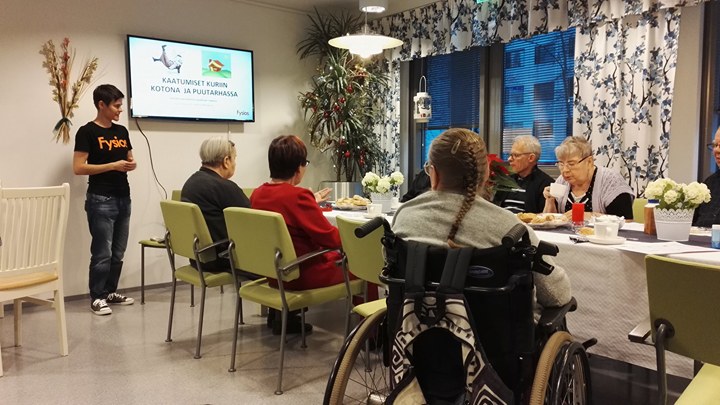 Kokeilun piiriin kuuluvilla asukkailla on nyt mahdollisuus panostaa hyvinvointiin vuokranantajan tukemana. Keravalla järjestettiin joulukuussa ensimmäinen hyvinvointiluento, jossa fysioterapeutti Hanna Markkula Fysiokselta kertoi hyvinvointipalveluista Lumo-kotien ikääntyneille asukkaille.