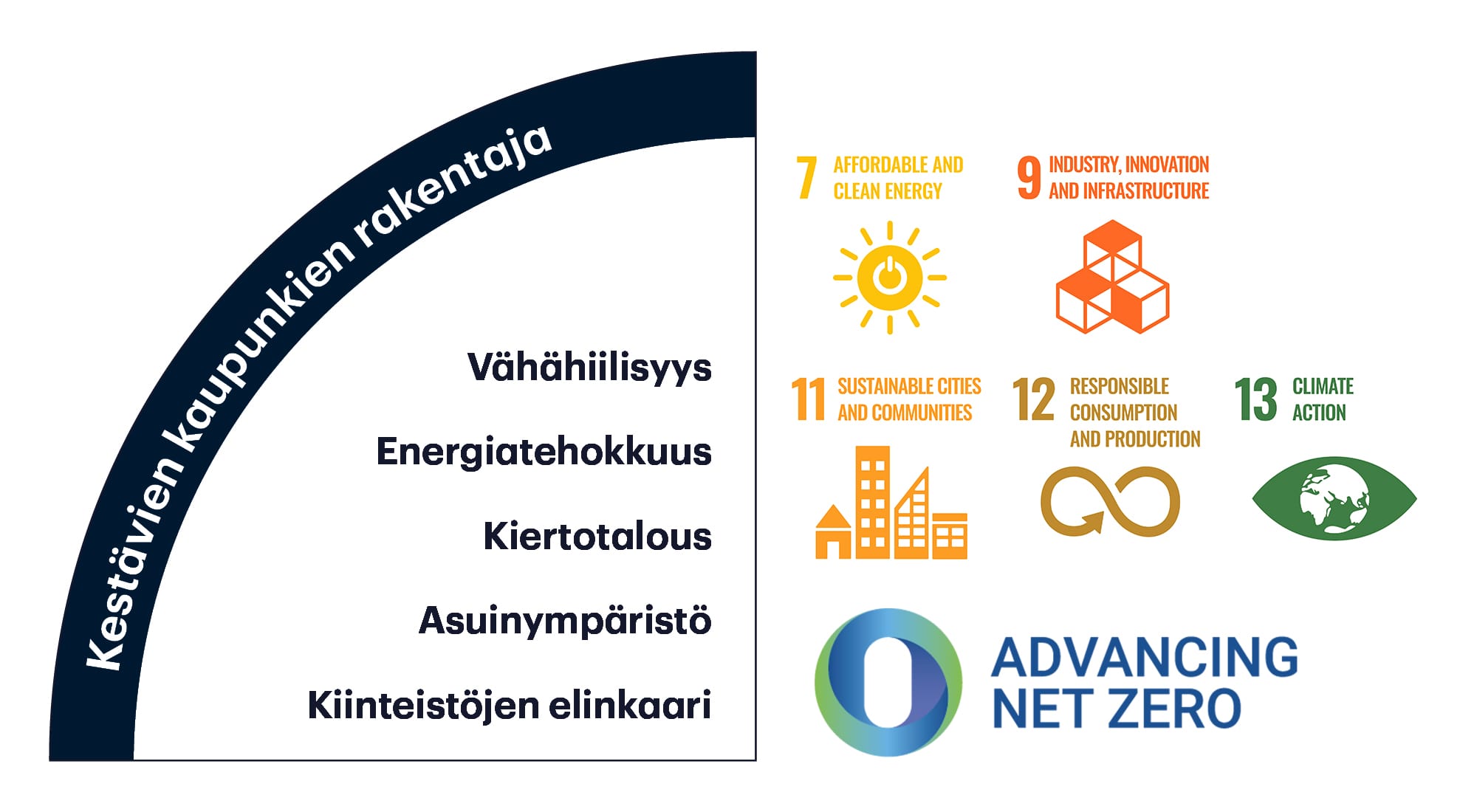 Osana hiilineutraaliustavoitettamme liityimme kansainväliseen World Green Building Councilin nollahiilisitoumukseen (Net Zero Carbon Buildings 2030 -Commitment).